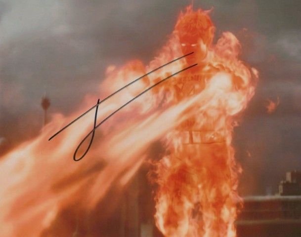 Joseph Quinn in person signed photo from the movie FANTASTIC FOUR FIRST STEPS.  Joseph Quinn as the character Johnny Storm / Human Torch.