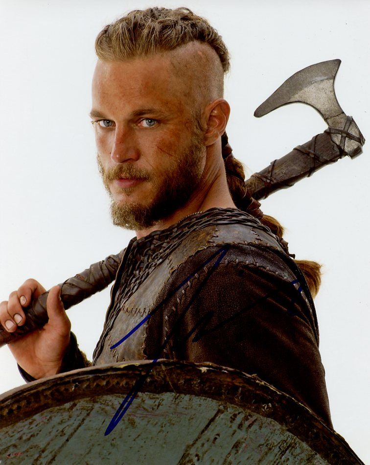 Travis Fimmell in person signed photo from the TV series VIKINGS. Travis Fimmell as the character Ragnar Lothbrok.