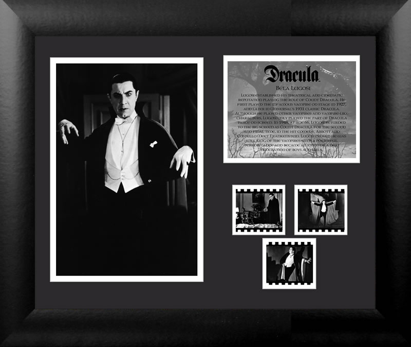 This item contains clips of film, an image portraying the movie(s), artist(s) or character(s) and a stunning descriptive plaque. These elements have been double mounted and placed within a beautiful black wood frame. Each item comes with a certificate stating its authenticity. - See more at: http://filmcellsltd.com/draculabelalugosi1931usfc2424.aspx#sthash.kWdS3XOb.dpuf