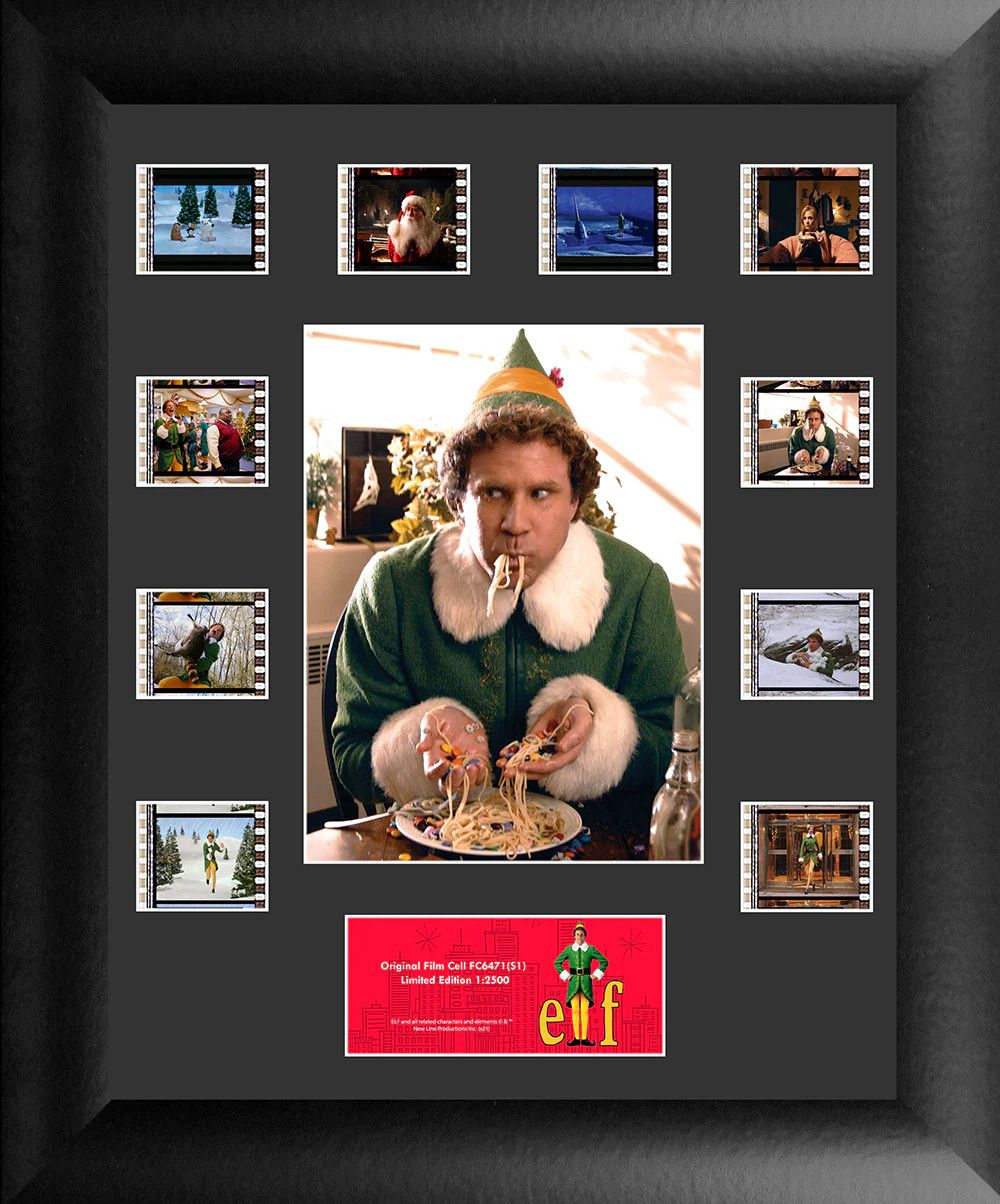 "We elves try to stick to the four main food groups: candy, candy canes, candy corns, and syrup." Buddy the Elf is chowing down on his casual dinner of spagetthi al la syrup on this 11” x 13” Mini Montage FilmCells presentation. Surrounding this memorable image from Elf are ten 35 mm carefully handcut film clips from the film reel of the Christmas comedy Elf on this 11” x 13” Mini Montage FilmCells presentation. Act fast – this piece is one of only 2500 available!