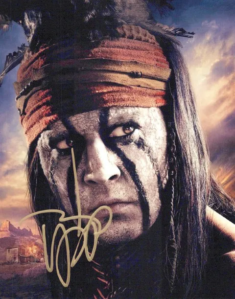 Johnny Depp in person signed photo from the movie THE LONE RANGER. Johnny Depp as the character Tonto.