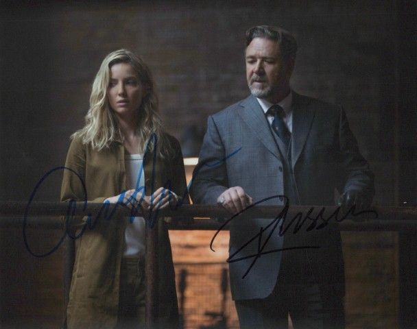 Russell Crowe / Annabelle Wallace in person signed photo from the movie THE MUMMY. Russell Crowe as the character Henry Jekyll. Annabelle Wallace as the character Jenny Halsey.