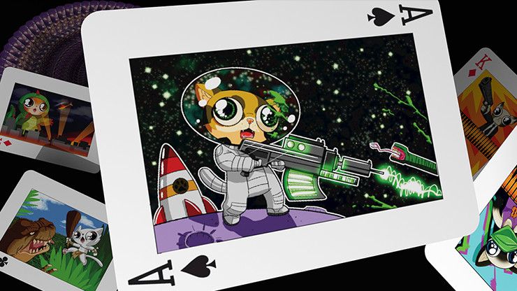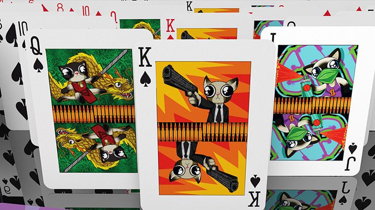 This "CLAW-SOME" deck features kittens with weapons, beautiful fanning abilities, world-class stocks and finishes, "HISS-TERICAL" artwork, and an amazing built-in magic trick! What else could anyone want?